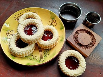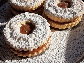 These are the quintessential indulgence of buttery, soft almond laced traditional Linzer cookies layered with locally sourced specialty jams and jellies.